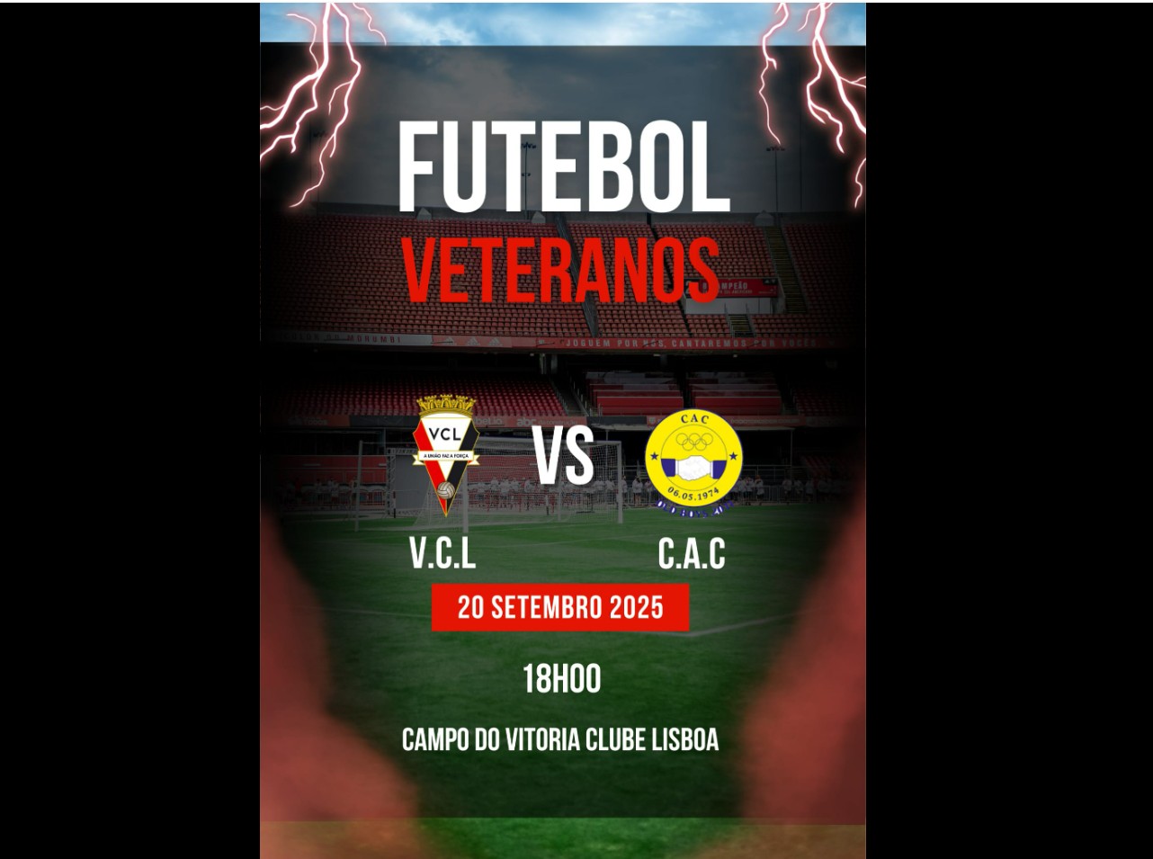 No próximo sábado, 20 de setembro de 2025, às 18h00, o Campo do Vitória Clube de Lisboa será palco de um encontro especial: o jogo entre o Núcleo de Veteranos do VCL e o C.A.C.. Mais do que um simples jogo, será um momento de reencontro entre antigos atletas, adeptos e famílias, celebrando o espírito do futebol que vai muito além do resultado.